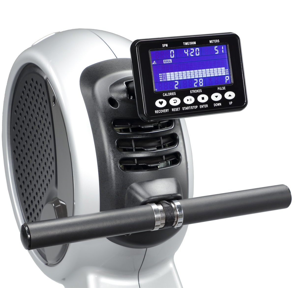 Het stalen schoepenrad zorgt via een opbouwende luchtweerstand voor de natuurlijke roeibeweging, en het magneetsysteem gekoppeld aan een 11 kg vliegwiel, aangedreven via een Hutchinson V-belt, regelt de extra computergestuurde trainingsweerstand.